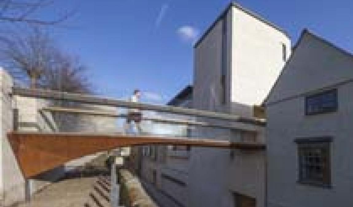 At the time of its construction it was 99 years since Oxford city centre had witnessed the completion of an over-street bridge and the design and engineering of the newest addition was very challenging. The structure spans one of the few remaining narrow medieval streets of Oxford city as well as the old city wall itself (now a scheduled ancient monument). The final result is an elegant and impressive use of corten steel and glass.