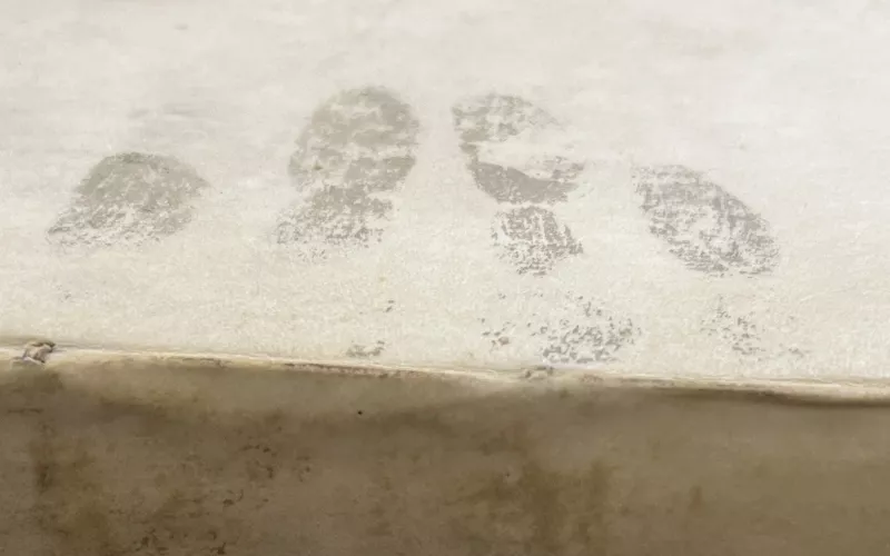 6. The most distinctive thing about the book is the very visible handprint of a previous user. Four finger marks are on the front, with a thumb print on the back, indicating that it was once held by a very dirty right hand.
