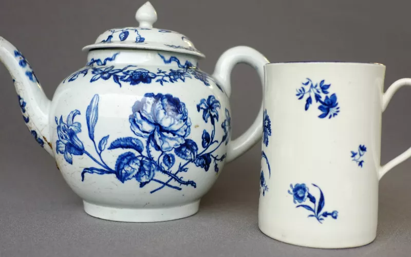 1. This teapot and mug were manufactured by ‘The Worcester Tonquin Manufacture’ who would go on to become Royal Worcester. They produced the best blue and white porcelain tea-ware available at the time.