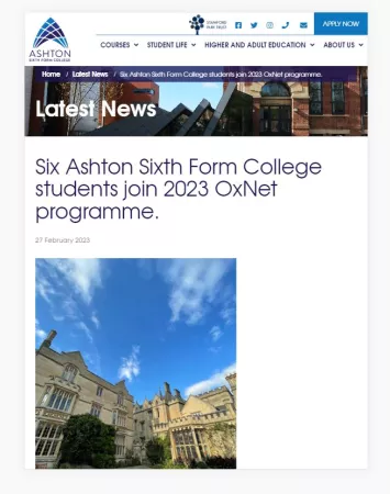 Six Ashton Sixth Form College Students Join 2023 OxNet programme