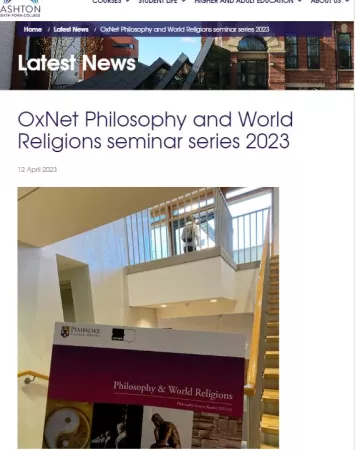 "Five outstanding students from Ashton Sixth Form College have received offers to study at The University of Oxford and The University of Cambridge.... Ashton Sixth Form College has been a host of The Goldsmiths’ Sutherland Centre for Philosophy and World Religions in partnership with Pembroke College, University of Oxford for over 10 years. The long-standing partnership provides incredible opportunities for students, including the Oxnet Access Programme."