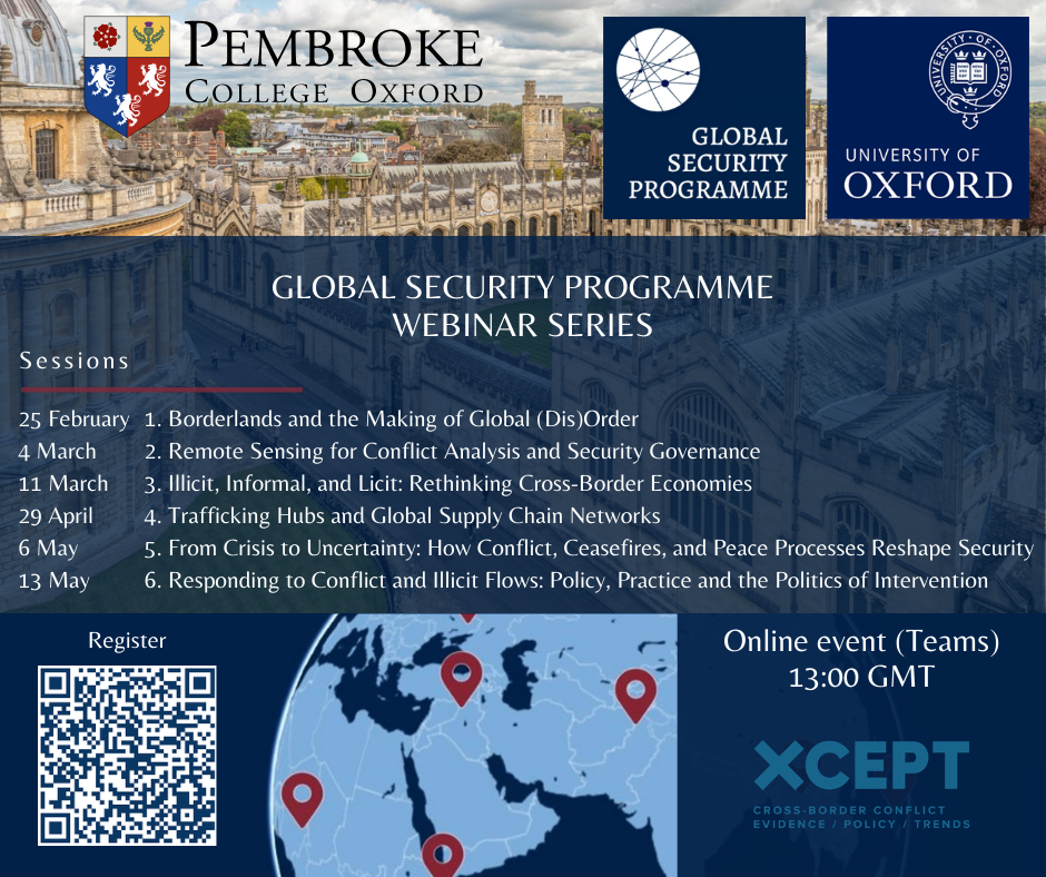 The new Global Security Programme Webinar Series is a six-episode discussion bringing together scholars and practitioners to examine how conflict, governance, and illicit flows interact across borders. Supported by XCEPT.