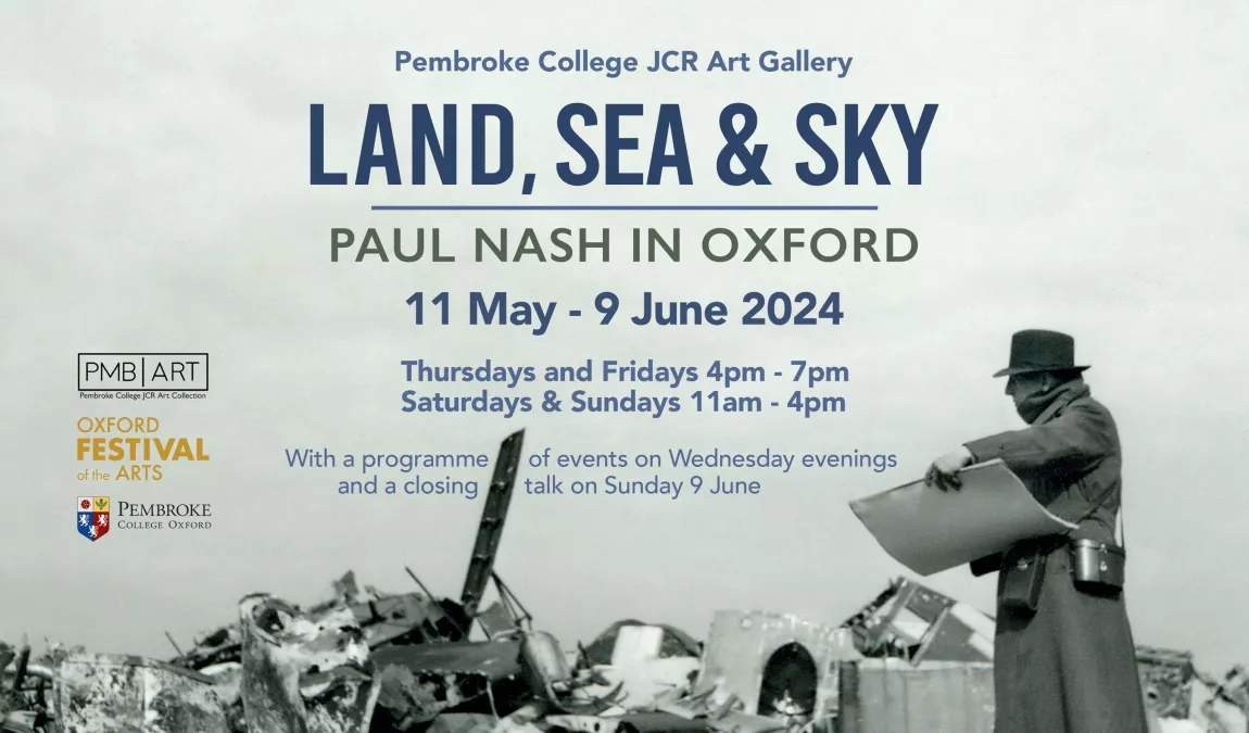 - Paul Nash Curatorial panel discussion - Christopher Baines, Michelle Castelletti, Jan Cox, David Boyd Haycokc, Ian Holgate, Peter Vass (book here), Wednesday 5th June, 6:30pm, Pichette Auditorium, Pembroke College