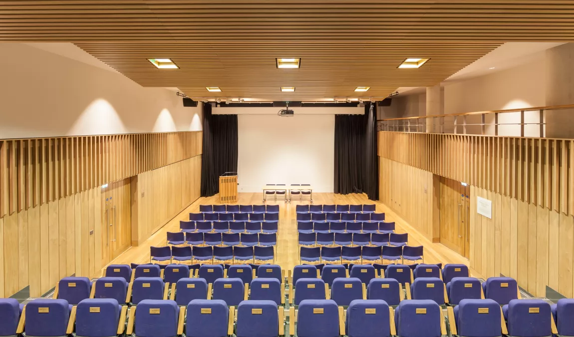 The beautifully crafted, oak-panelled Pichette Auditorium is a cleverly designed, flexible space with built-in state-of-the-art AV facilities and excellent acoustics. Removable loose seating and a sectionable balcony area allow the space to feel intimate enough for groups as small as 30-50, as well as spacious enough for larger groups all the way up to the maximum capacity of 170.