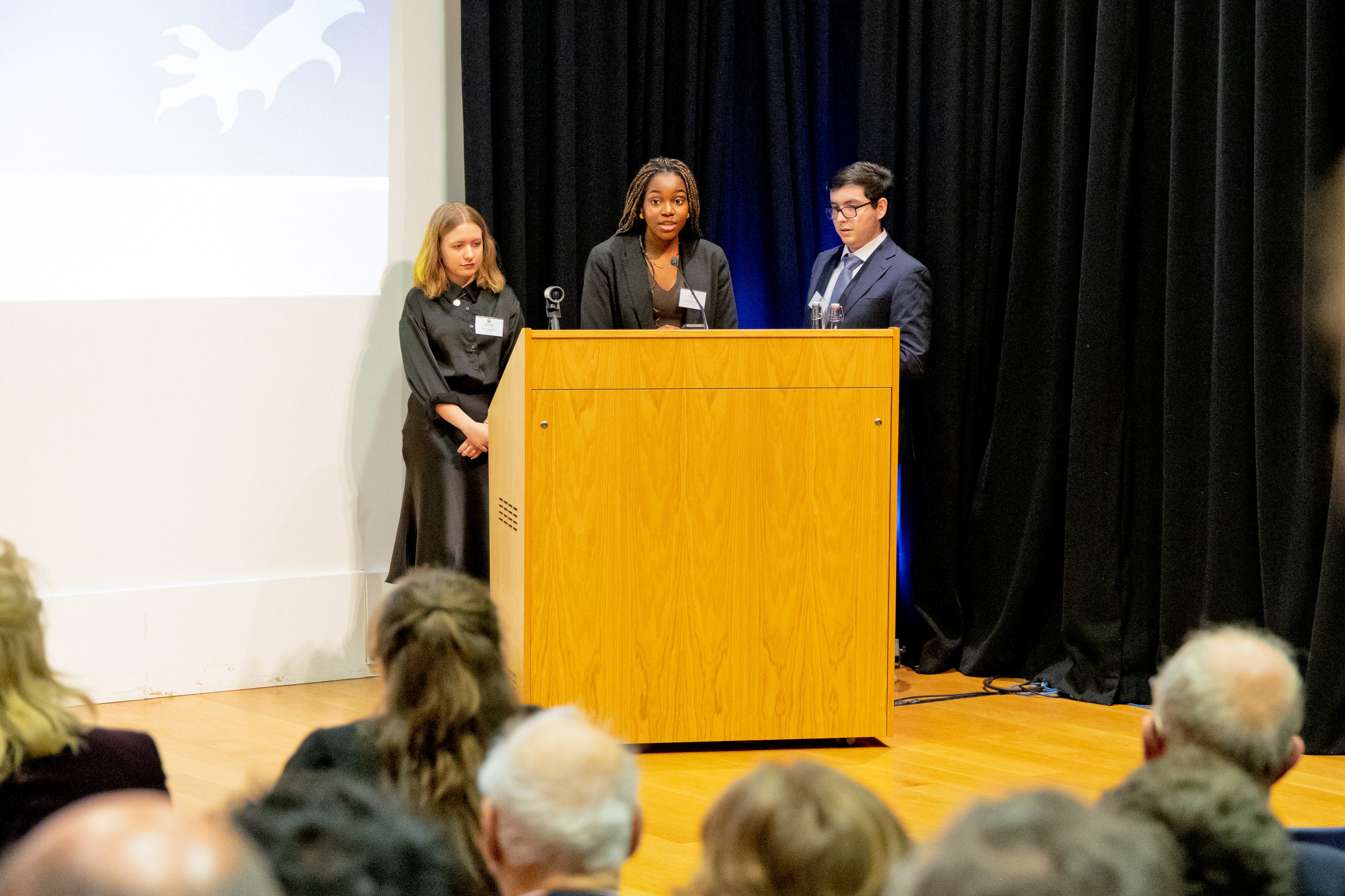 We were also pleased to introduce student representatives and committee members of the restored Pembroke College Blackstone Law Society: Chinenye Uwakwe (President), Jemma Croucher (Vice President) and Oisin Hart (Secretary). The Society aims to serve as the student voice of Pembroke Law, enriching Pembroke’s legal community through informative events that connect students with legal professionals, alongside practical support on applications for internships, vacation schemes, training contracts and pupillages, as well as revision and networking opportunities.