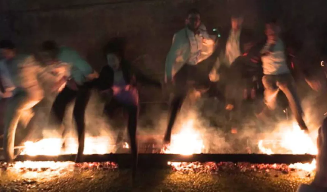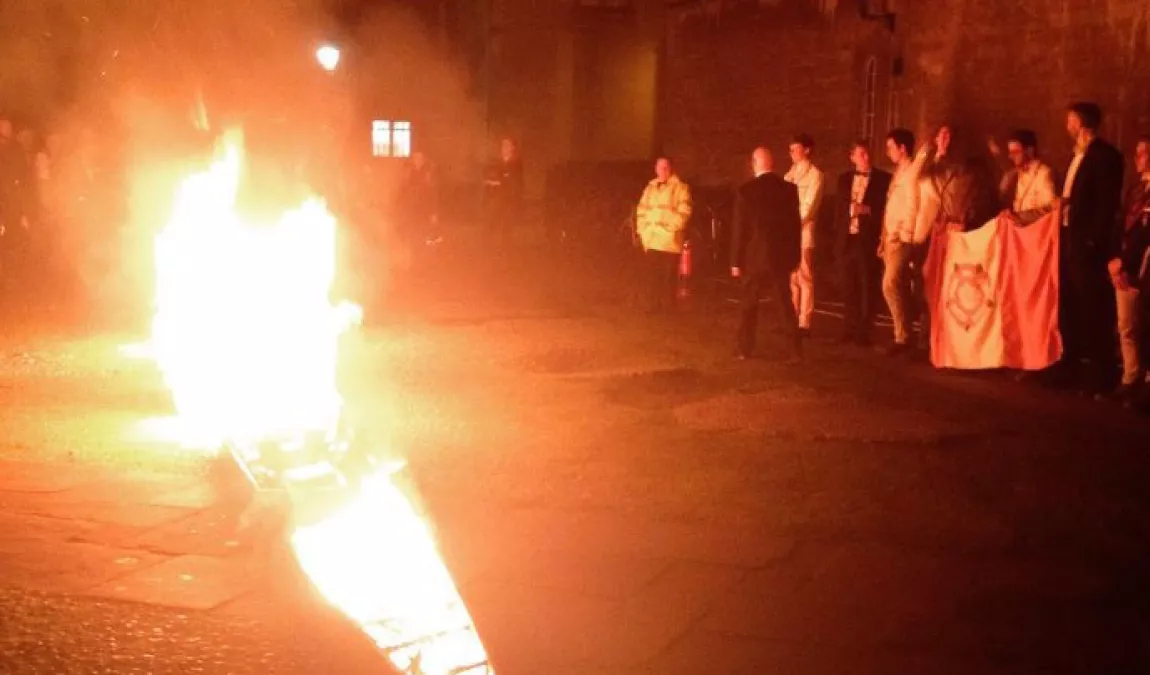 Boat burning and jumping over the boat in North Quad to celebrate the Torpids 2017 Headship
