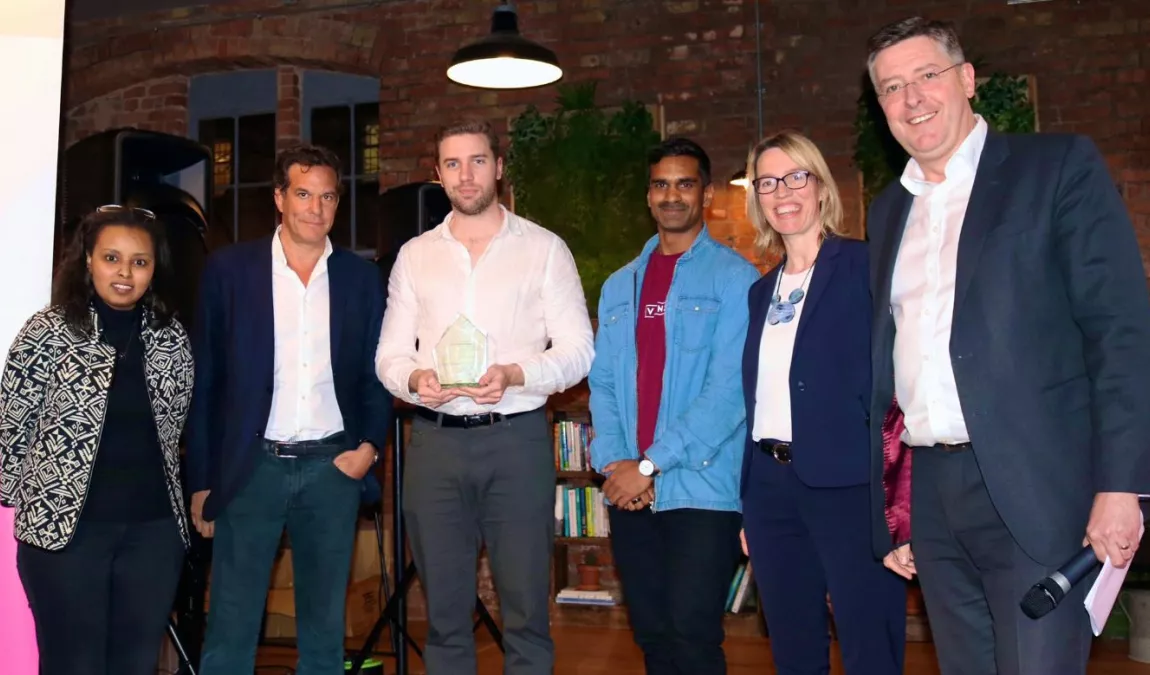 (Left to right: Riham Satti, Brent Hoberman, Alex Barnes, Yohan Iddawela, Claire Davenport, Matt Hutnell)Team members Alex Barnes (Pembroke, DPhil International Development, 2017), Yohan Iddawela (LSE PhD student), Sebastian Mueller (ConflictScanner CTO), Sam Watts (ConflictScanner – Legal Officer) and Marguerite Tong (Masters, Department of Computer Science), were awarded £5,000 for their entrepreneurial idea.