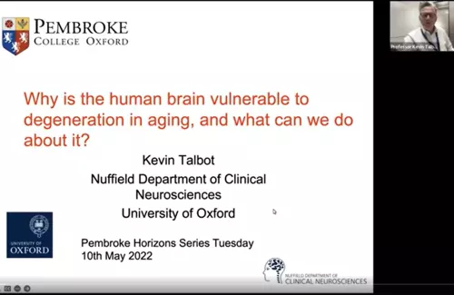 Professor Kevin Talbot: Why is the human brain vulnerable to degeneration in aging & what can we do about it?
